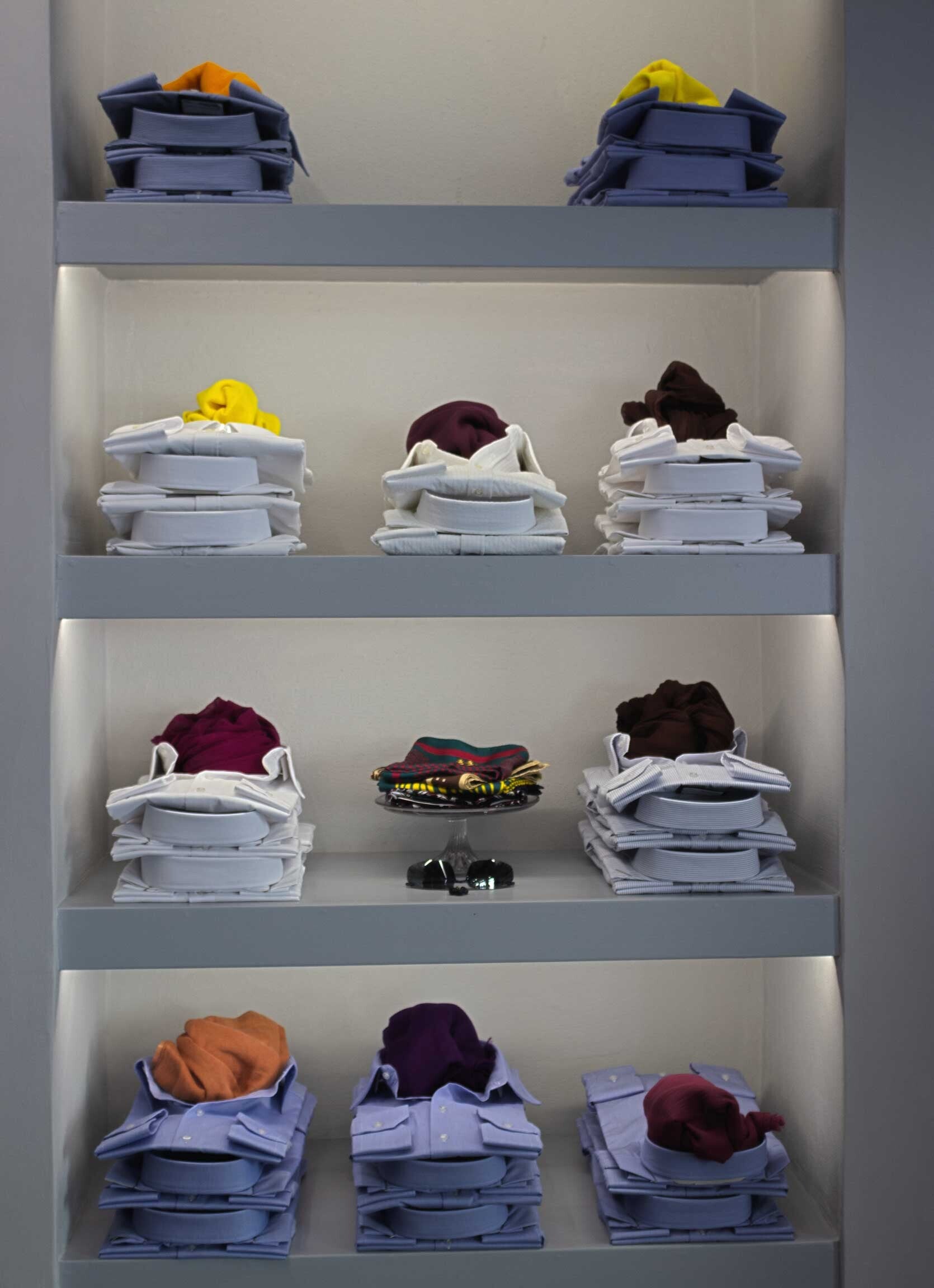 In questa galleria, l’abito perde il suo ruolo funzionale e si fa protagonista di una visione astratta e concettuale. Tessuti, cuciture, bottoni, trame e colori diventano elementi grafici, dettagli da osservare con occhi nuovi. Un gioco visivo che trasforma l’apparenza in pura espressione estetica, dove forma e luce si incontrano per suggerire emozioni.